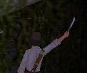 den Pflanzenvorhang mit der Machete. Folge dem Gang dahinter und geh