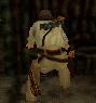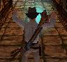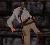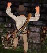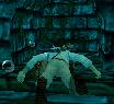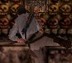 Keine Angst, er tut Dir nichts. Er nimmt Dir nur alles ab, was Du hast, inklusive aller Artefakte. Ausserdem nimmt er Dich mit auf sein Schiff und sperrt Dich dort ein. Im nächsten Level darfst Du von diesem Schiff flüchten.