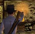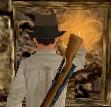 den Revolver und geh in den Raum. Hier haust ein Jaguar. Feuere ein