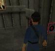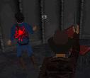 die Tür und geh unsichtbar hinein. Dreh den Muskelprotz ein