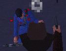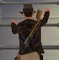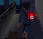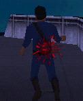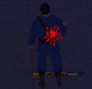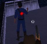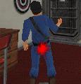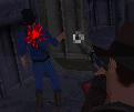 Dich hinter ihn, zieh eine Waffe (Revolver oder Pistole) und schiess
