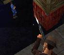 ihn nieder. Nimm seine Waffe und geh zurück in den Lagerraum.