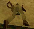 Von der Ecke des Pyramiden-Absatzes aus kannst Du einen Laufsprung zu