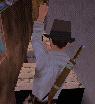 nach vorne an die Kante und nimm das Gewehr heraus. Unten auf dem