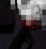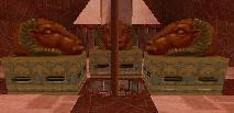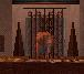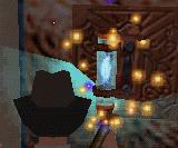 zwei komische Statuen. Geh zu der linken. Die Wand daneben sieht
