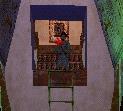 Absatz, von dem aus Du das Set sehen konntest. Klettere auf den