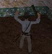 Nun ja, wenn Du nahe genug bist, prügelt er drauflos. Er hat nämlich keine Manieren.