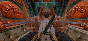 dann wieder hinaus und folge dem Gang bis auf einen Lift. Er bringt