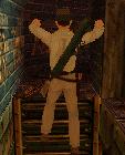 in den Gang und klettere am Ende die Leiter hinunter. Nicht springen.