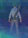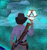 die Pistole. Unten auf dem Boden laufen wieder mal diese Viecher