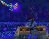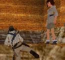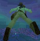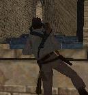 einen Vorwärts-Sprung zu der kaputten Säule vor dem