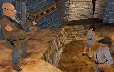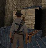 herunter gefallen. Dann dreh Dich nach links. Ah, ein Durchgang.
