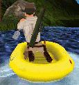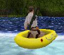 Du genug herumgealbert hast, setzt Du das Floss ins Wasser und fährst