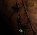 hinunter. Unten am Boden warten zwei Spinnen und zwei