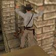 ist eine Kante in der Mauer. Spring hinauf hangele nach