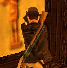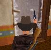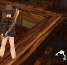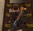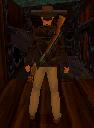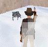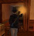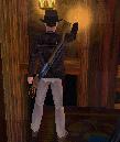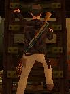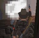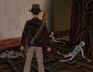 als erstes den Revolver, um den Wolf zu verjagen, der links