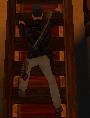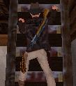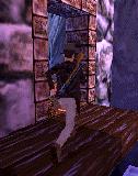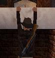 die Leiter hinauf. Oben gehst Du nach links, über eine