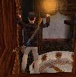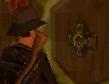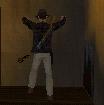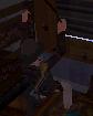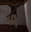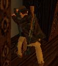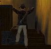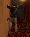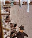 lauert. Er muss in die Ecke rechts neben der Tür des