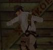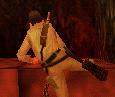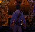 Dich mit der Peitsche durch den Raum mit dem Spuck-Statuen. Du