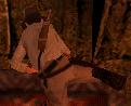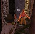 Halt auch die Machete bereit. Ein oder zwei Piranhas harren Deiner im Tunnel. Ziemlich bald siehst Du an der Tunneldecke einen weiteren Gang, der nach oben führt. Schwimm dort hinein. Wenn Du diesen Gang nicht auf Anhieb findest, ist das nicht schlimm. Du kommst dann entweder auf einem anderen Weg dorthin, oder Du kommst wieder im See-Raum hinter den spitzen Steinen heraus.