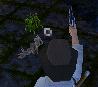 dann sofort den Revolver, um die heranstürmende Spinne zu