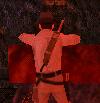 in so einer Art Nebenraum, ist ein Soldat, der ebenfalls eine