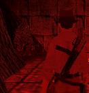Absätze hinunter. Du stehst neben einer Tür. Geh hinein.