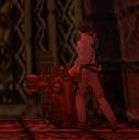 der Statue ist ein Knopf. Drück drauf.