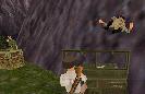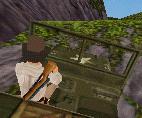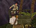 Dann fährst Du weiter, immer geradeaus. Du bist sehr bald wieder in der Anfangs-Höhle. Fahr nach links und dann wieder zum Teich, und von dort an der Hütte und dem Totempfahl vorbei zu dem Ort, wo Du zwei Soldaten flachgewalzt hast. Der Weg zum Teich ist ganz einfach: Immer rechts.