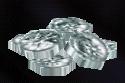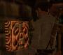 Hier ist nun der wichtigste Teil der Maschine: Die vier zahnradförmigen Steine. Einer davon steht an der Wand, vor einer Platte, die wie eine Tür aussieht. Die anderen drei stehen näher am Loch in der Mitte.