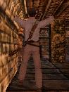 Häng Dich nun wieder an den Rand über dem Durchgang im Loch. Meist weigert sich Indy ohnehin, sich noch mal an der Kante des Durchganges festzuhalten. Deshalb beschreibe ich hier nur dir Variante, wo Indy direkt nach unten springt. Ihm passiert dabei nichts. Wenn er sich also an der unteren Kante festhält, lass Dich gleich hinunter fallen.