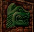 An der Wand sind vier dieser Türen, alle mit einem Symbol: Ein Fisch, ein Vogel, ein Jaguar und eine Tür mit allen drei Symbolen. Geh zu dem Zahnrad-Stein vor der Jaguar-Tür.