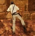 ![]() Bei der Tür vor Dir wartet eine Schlange. Geh so nahe heran, dass Indy auf die Schlange zielt. Dann schiesst Du mit Ctrl, bis das Blut spritzt (tönt brutal, ich weiss). Wenn die Schlange es schafft, Dich zu beissen, benutze das Gegengift, das Du im Gepäck hast. Steck den Revolver mit der Leertaste weg. |