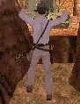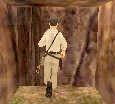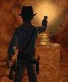 ![]() Nimm nun Deinen Revolver hervor. Dann springst Du in die Senke vor Dir hinunter. Beachte dir Tür rechts nicht weiter. |